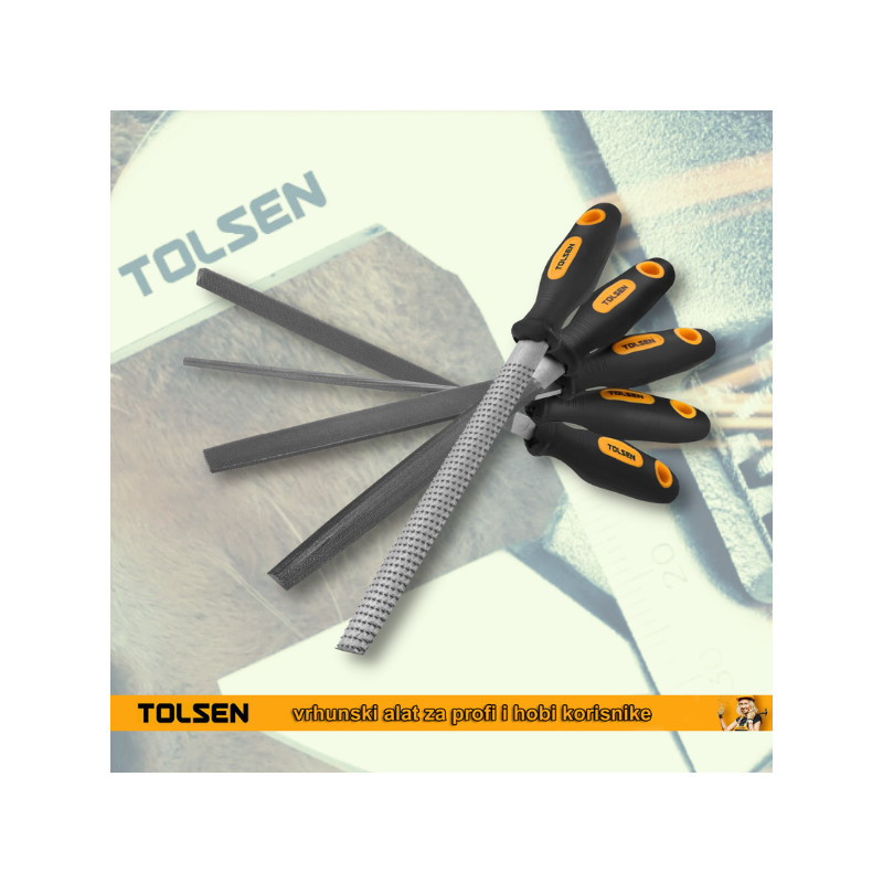 U setu su ravna , poluokrugla, okrugla i trouglasta turpija za metal i jedna poluokrugla turpija za drvo.